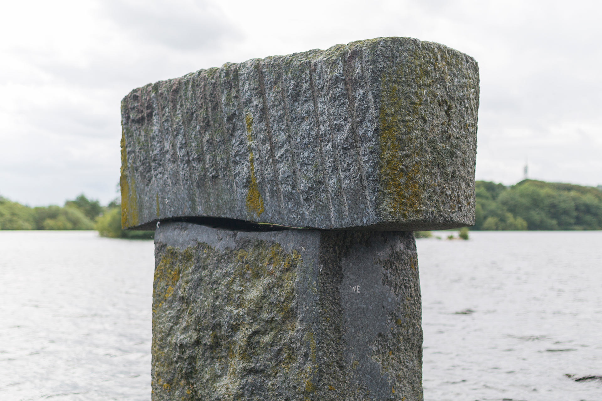 «Bølge I», også kalt «Bølgen», består av to store steinblokker som er plassert oppå hverandre, og som ruver opp av vannet på utsiden av Andedammen. Steinblokkene er laget av bergarten larvikitt. Kikker du gjennom glipen mellom steinene, vil du oppdage opphavet til navnet–luftrommet er nemlig formet som en bølge. Skulpturen er bekostet av Olaf A. Olsens legat til forskjønnelse og vedlikehold av Mosvannsparken.