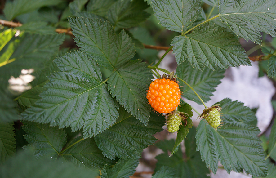 Prydbringebær får bær som ligner på bringebær, men er gule slik som multer. De kan spises.
