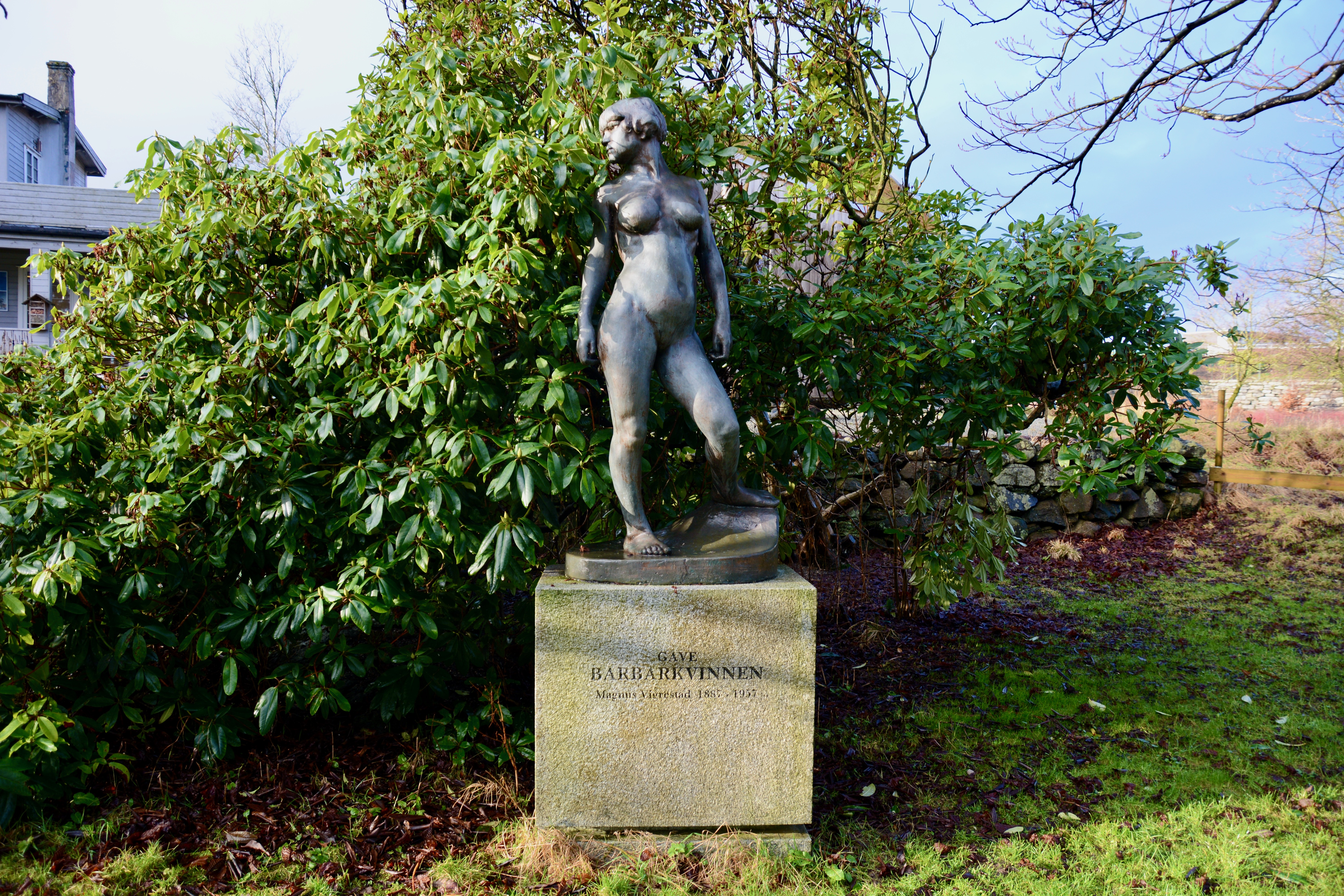 “Barbarkvinnen” er ansett for å være Stavangerkunstneren Magnus Vigrestads viktigste verk. Originalen, som ble laget i 1914, står i Børsparken i Kristiansand. I 1965 gav kunstnerens familie en gipsmodell av den 167 cm høye skulpturen i gave til Stavanger Faste Galleri. Rogaland kunstmuseum fikk så laget en ny bronseavstøpning for å hedre kunstneren. Denne står nå i Mostunhagen ved Mosvatnet.